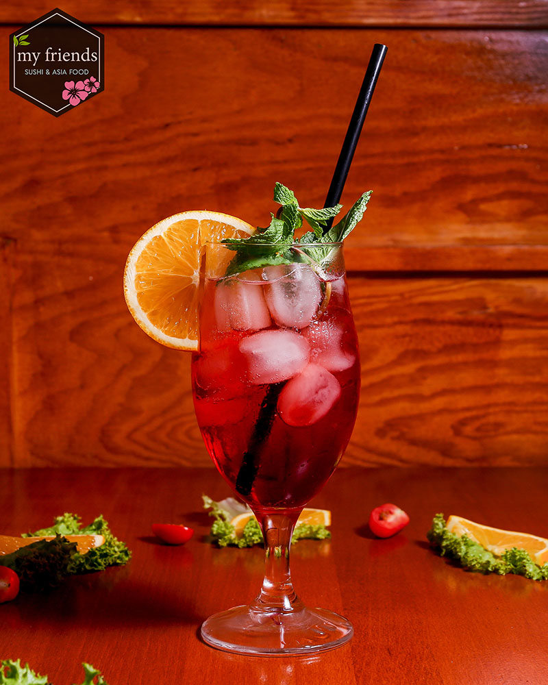 Vodka, Peach Tree, Watermelon Liqueur, Lemon Juice, Pineapple Juice, Cranberry Juice, Grenadine
