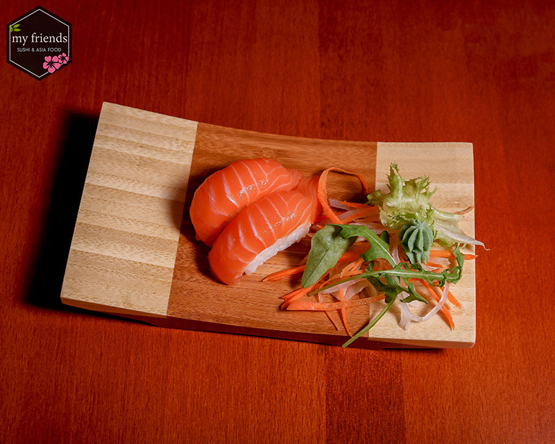 2 Nigiri, 1 Maki, 1 mini baked Roll Lachs